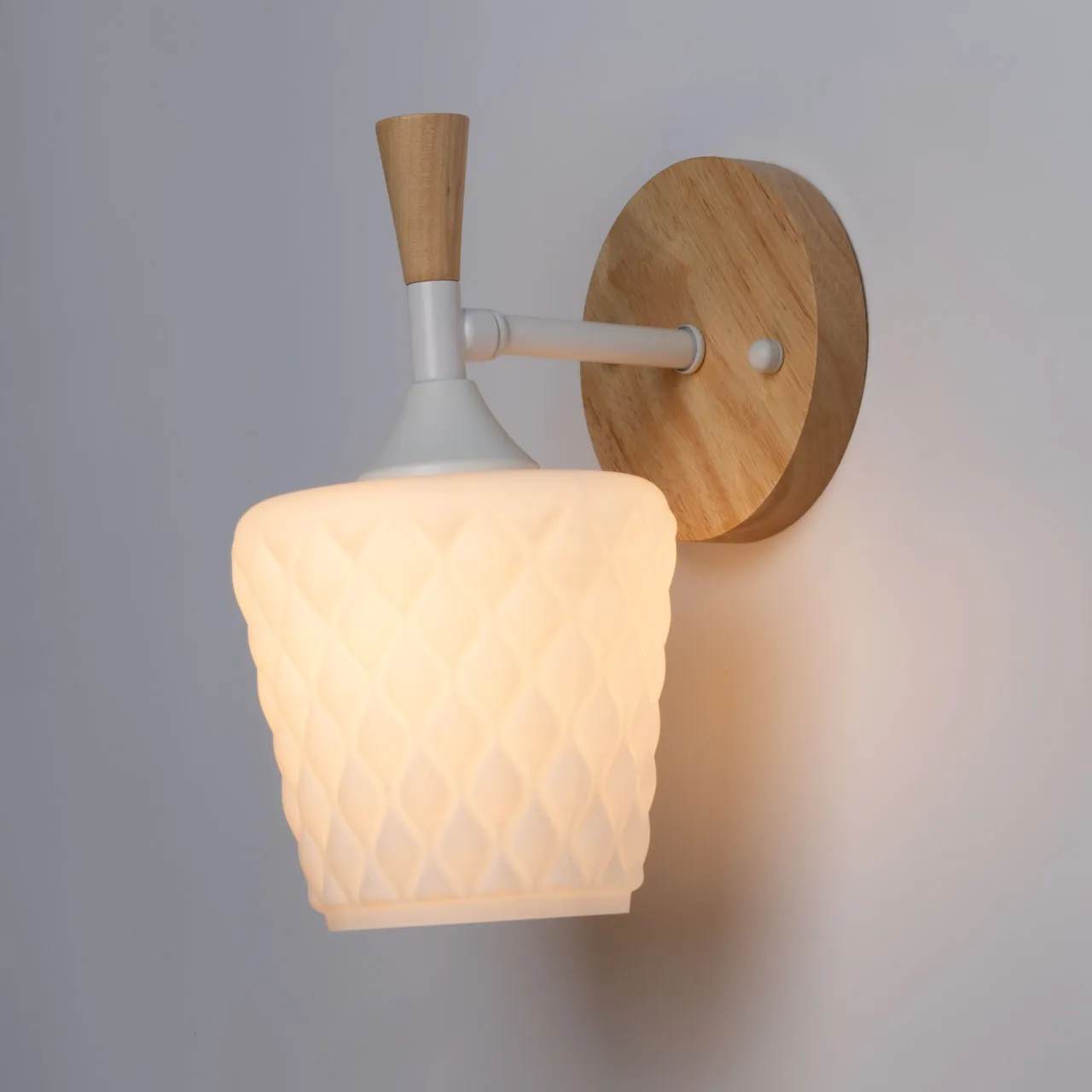 Основание/ металл/ белый Плафон/ стекло/ белое Декор/ дерево/ натуральное