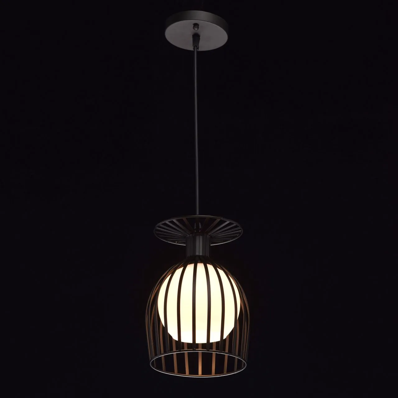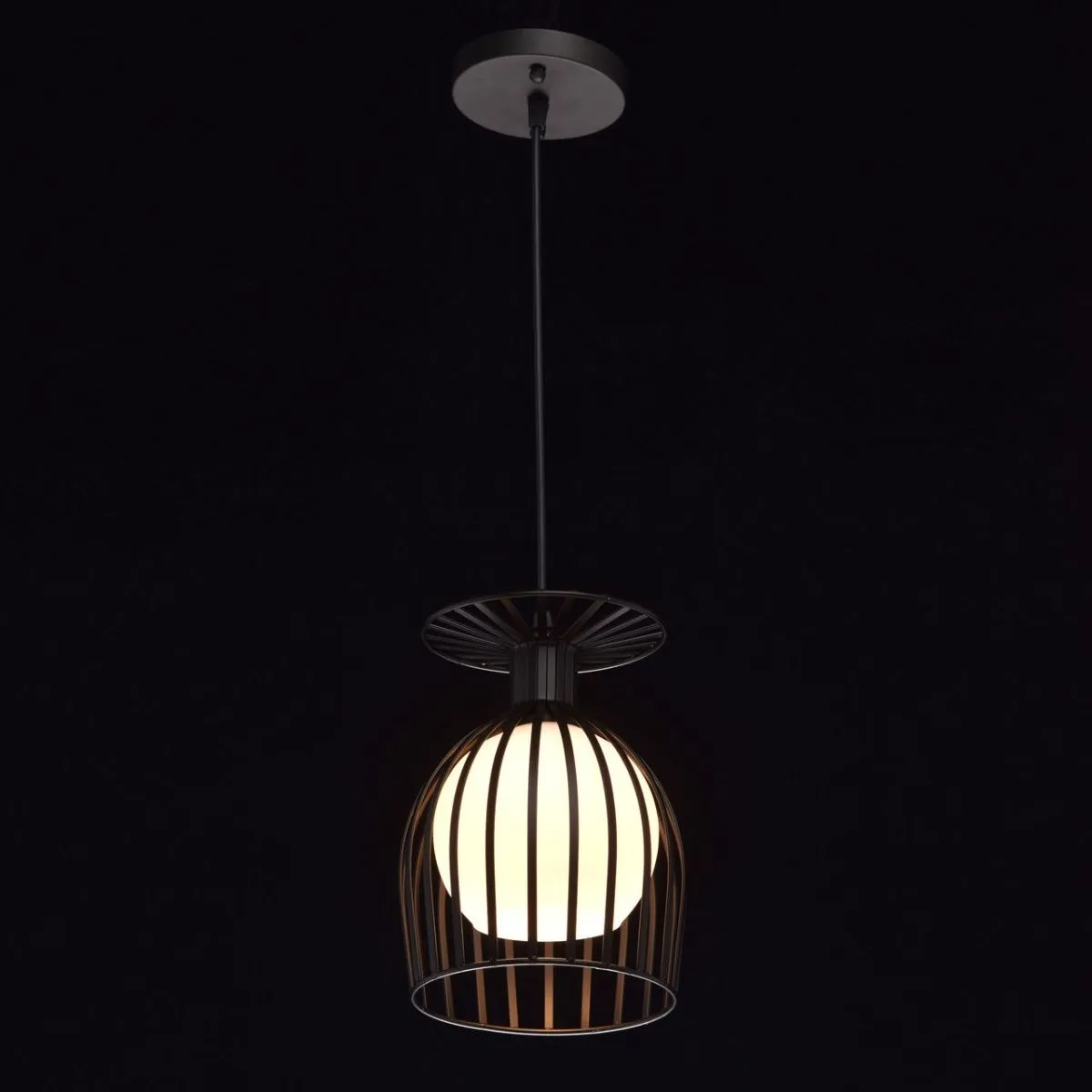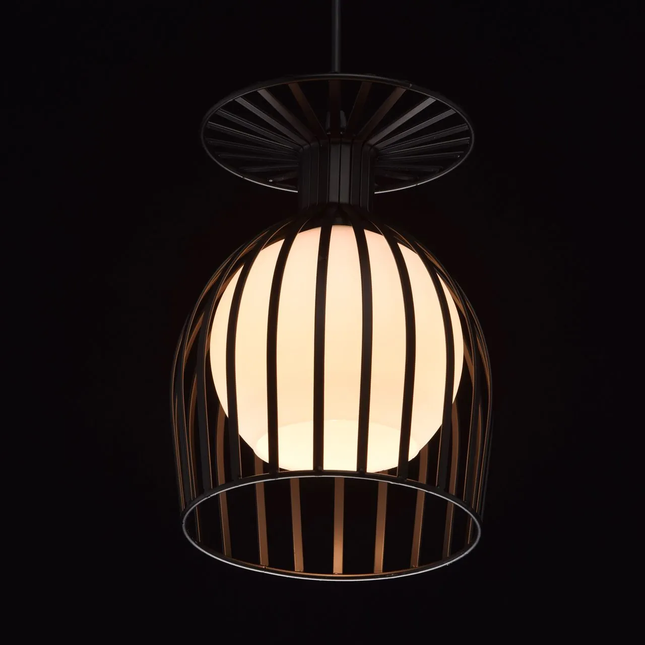 Металлическое основание черного цвета. Плафон: белое матовое стекло.