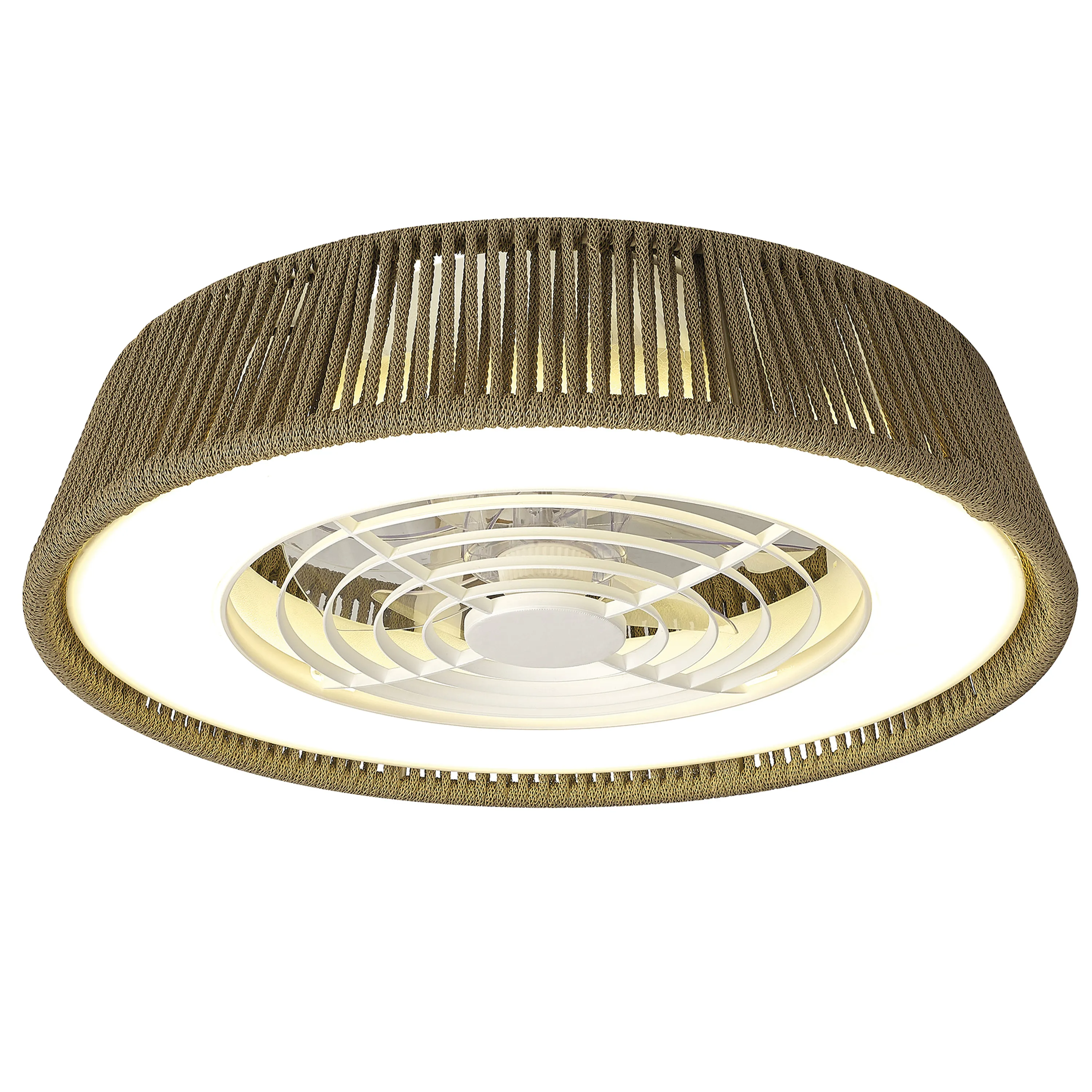 Вентилятор мощностью 35 Вт и 25 Вт установлен за сеткой абажура с замысловатым узором, который создает оптическую иллюзию и добавляет вентилятору эстетичности.