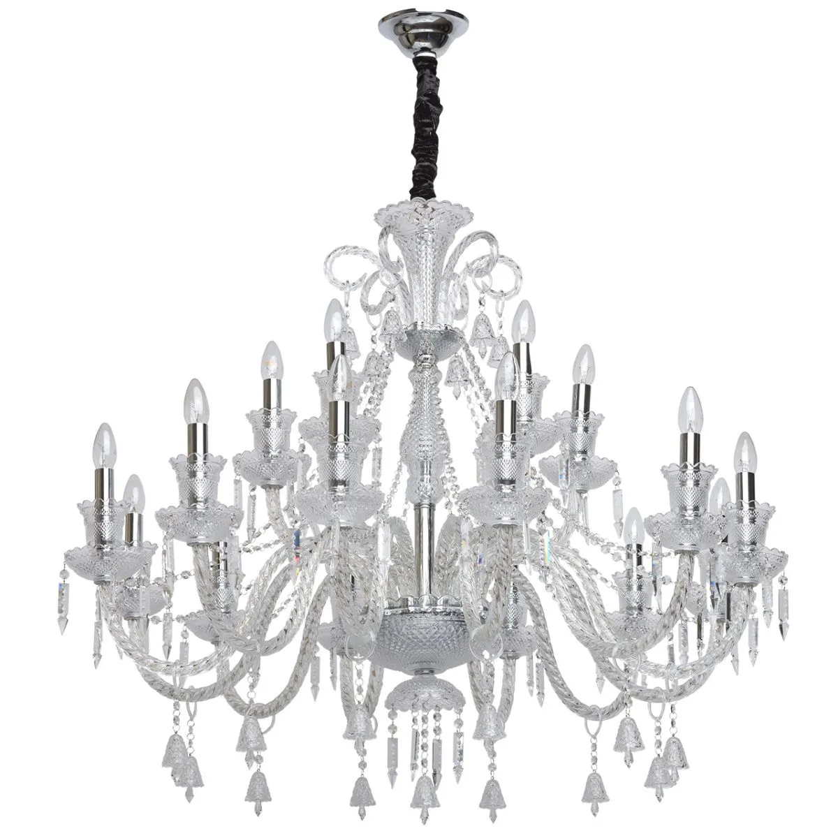 Металлическое основание цвета хрома, декоративные элементы из стекла и прозрачного хрусталя